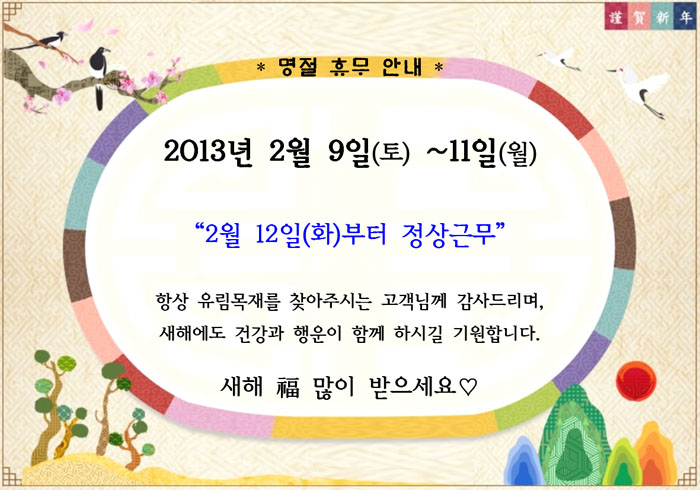 ¸íÀýÈÞ¹«¾È³»<2/9~2/11±îÁö> 2/12ÀÏ Á¤»ó±Ù¹«